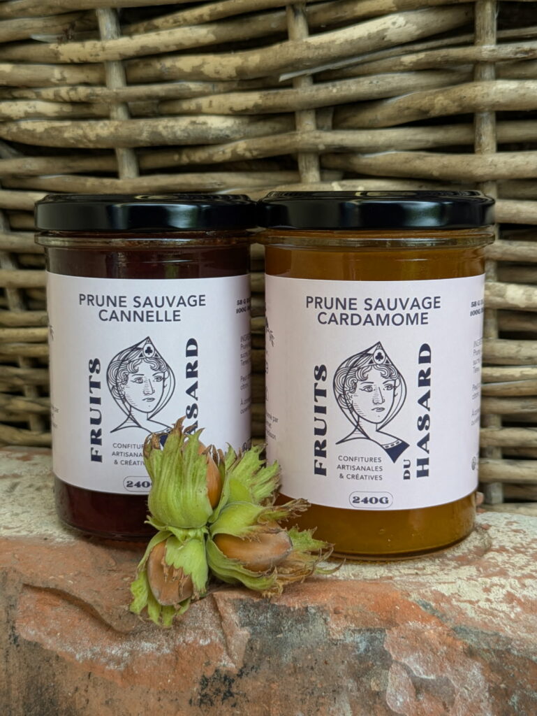 PRUNE SAUVAGE CANNELLE : Cueillie dans mon jardin au cœur de l’été, la petite prune rouge acidulée révèle sa douceur au contact de la cannelle de Zanzibar.